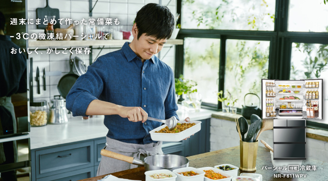 大容量かつ、機能的なパナソニックの冷蔵庫。エコナビ、光センサーで省エネに 微凍結パーシャルで 買った日の鮮度そのまま。ワンダフルオープン 野菜室 冷凍庫 100%全開